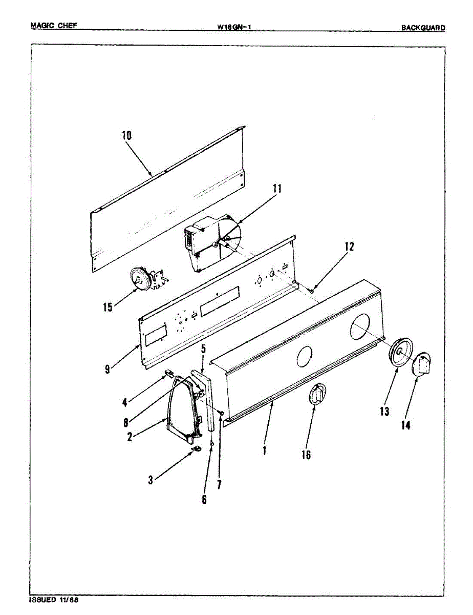 Parts for Magic Chef W18GN1: 02 - Control Panel Parts