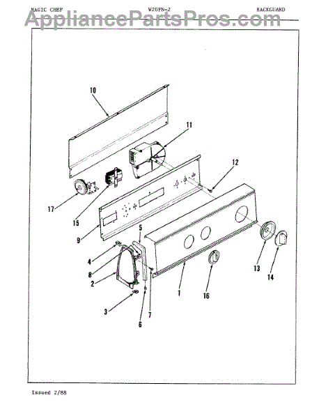 Parts for Magic Chef W20FN2: 02 - Control Panel Parts