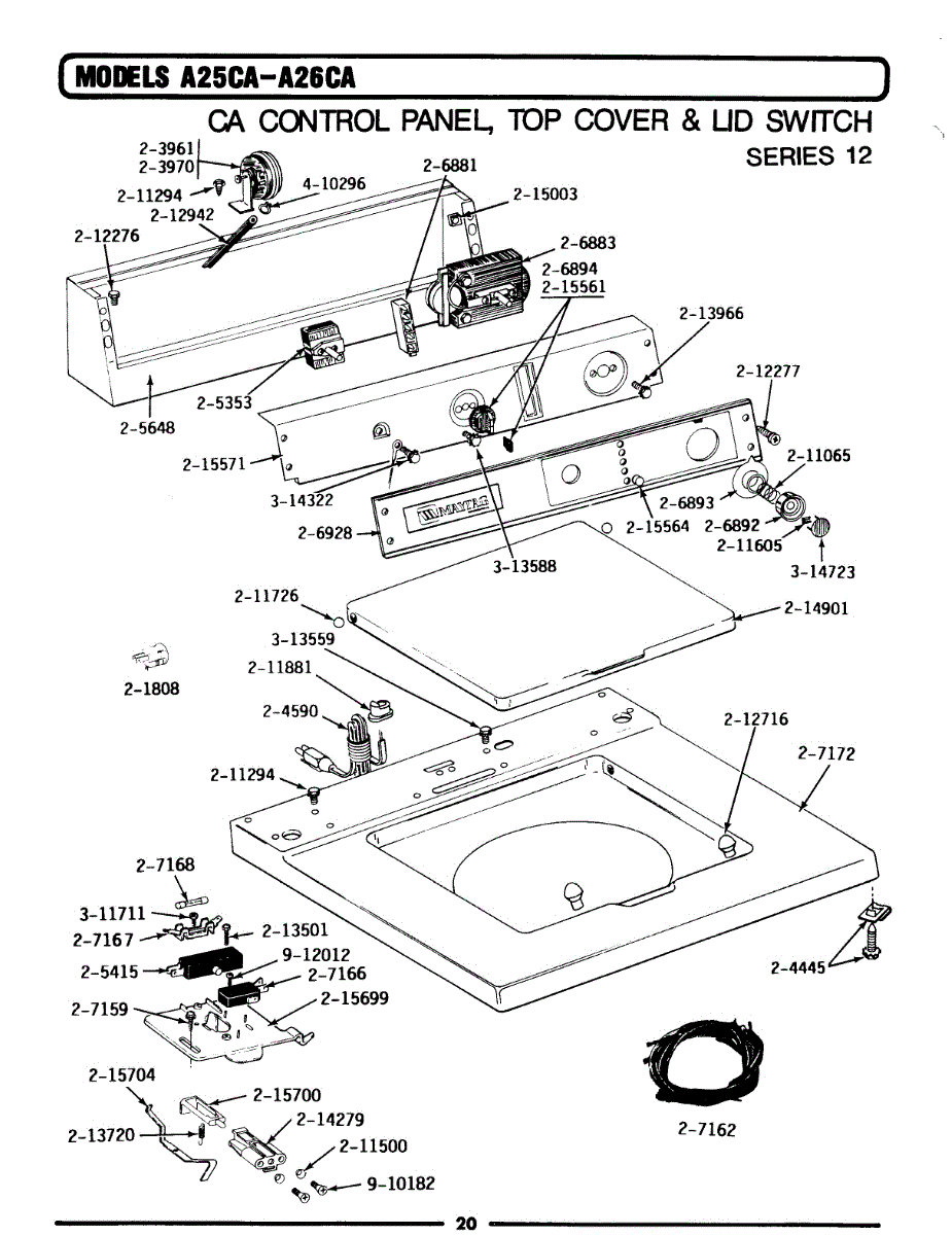 Parts for Maytag A26CAE: 02 - Control Panel, Top Cvr & Lid Swtch (12) Parts