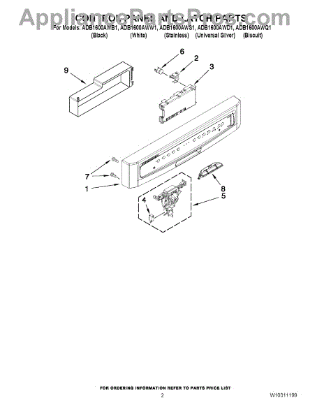 Parts for Maytag ADB1600AWD1: 02 - Control Panel And Latch Parts