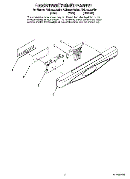 Parts for Maytag ADB3500AWS0: 02 - Control Panel Parts