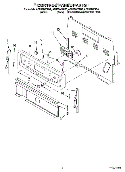 Parts for Maytag AER5844VAW0: 02 - Control Panel Parts