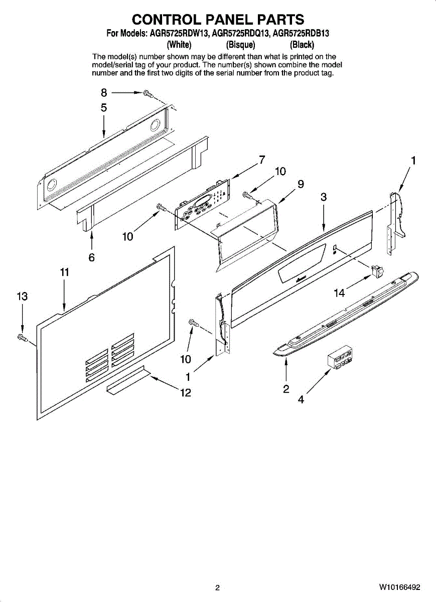 Parts for Maytag AGR5725RDB13: 02 - Control Panel Parts