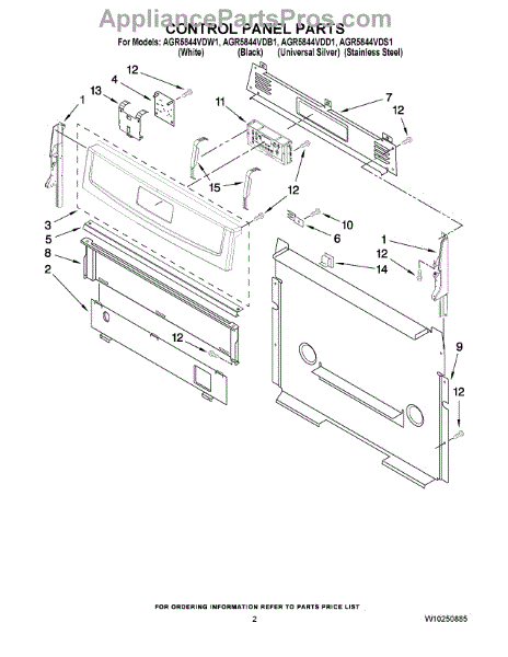 Parts for Maytag AGR5844VDD1: 02 - Control Panel Parts