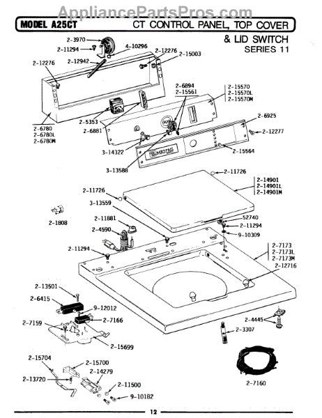 Parts for Maytag GA25CT: 02 - Control Panel, Top Cvr & Lid Swtch (11) Parts