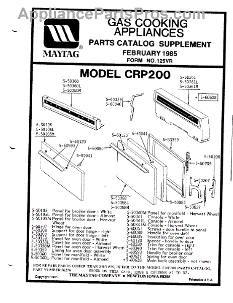 Parts for Maytag GCRP200: 02 - Control Panel / Door Parts