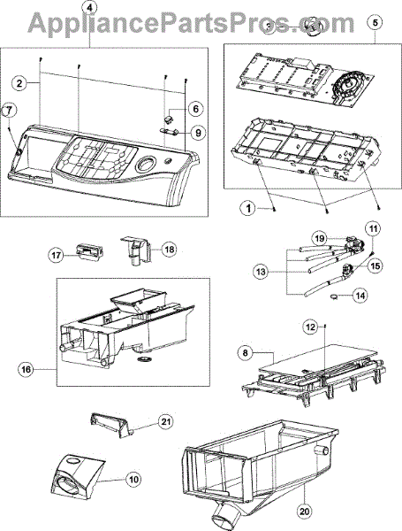 This assembly is the housing the dispenser drawer slides into, restoring a smooth pull-out action and proper dispensing. It supports the drawer and channels water through the detergent, bleach, and fabric softener compartments into the tub.
