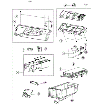 This assembly is the housing the dispenser drawer slides into, restoring a smooth pull-out action and proper dispensing. It supports the drawer and channels water through the detergent, bleach, and fabric softener compartments into the tub.