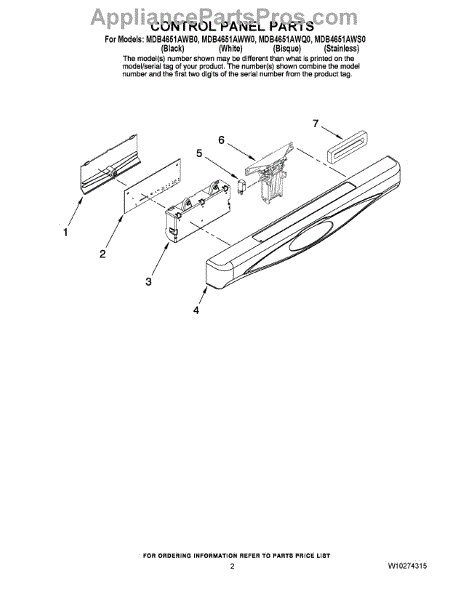 Parts for Maytag MDB4651AWB0: 02 - Control Panel Parts