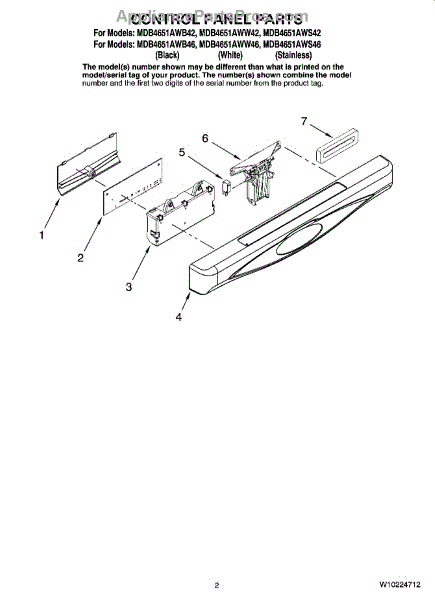 Parts for Maytag MDB4651AWS46: 02 - Control Panel Parts