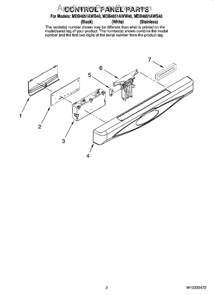 Parts for Maytag MDB4651AWW40: 02 - Control Panel Parts