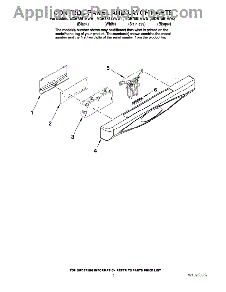 This dishwasher control panel is the central control unit found on the front of the appliance. All the buttons are housed on this component to control vital functions such as washing, rinsing, and water temperature. When the dishwasher shows signs of malfunction, specifically if it fails to engage in any one of the vital main functions, It's most likely the control panel or control board. Using a voltage tester will give a precise sign of whether a replacement part for this component will fix the issue. To start the replacement, unhook the dishwasher from its main power source and remove the appliance from the wall or counter. Depending on the model, the control panel should come out by pressing the fastening clips on the outer edges. Alternatively, there may be anchoring screws along the sides and top. After removing the control panel assembly, unplug the wire harness and prepare the new part for installation.This Whirlpool dishwasher control panel is a genuine OEM product sourced directly from Whirlpool. This is only available individually and is not included with any other components or the original appliance. This part is compatible with Whirlpool and Kenmore appliances.