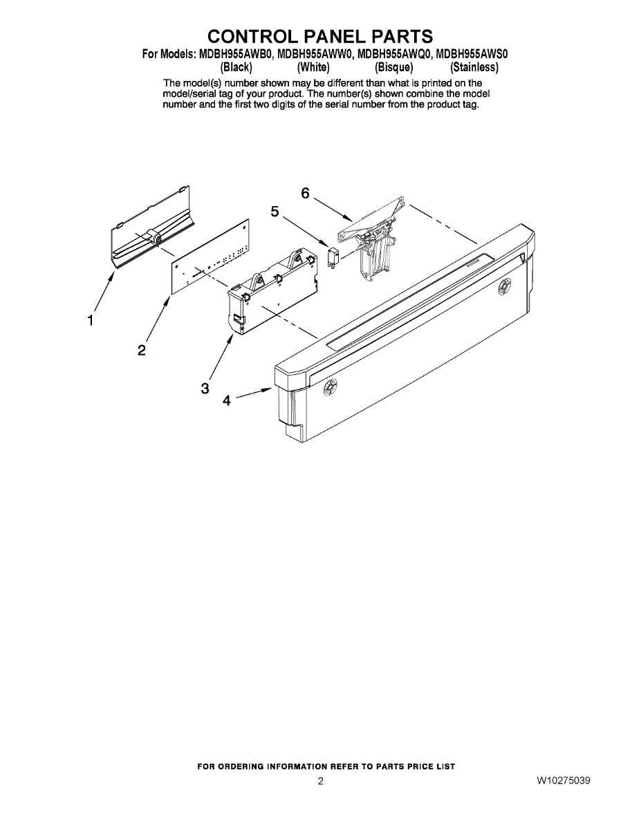 Parts for Maytag MDBH955AWS0: 02 - Control Panel Parts