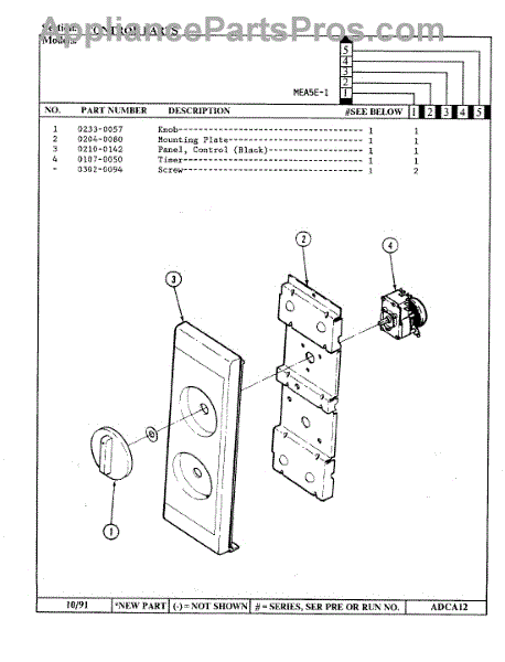 Parts for Maytag MEA5E-1: 02 - Control Panel Parts
