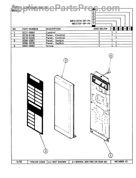 Parts for Maytag MEG15F-9P-P4: 02 - Control Panel Parts