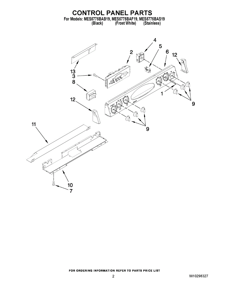 Parts for Maytag MES5775BAB19: 02 - Control Panel Parts