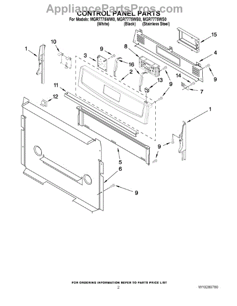Parts for Maytag MGR7775WS0: 02 - Control Panel Parts