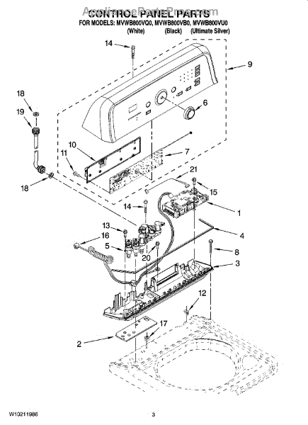 Parts for Maytag MVWB800VQ0: 02 - Control Panel Parts