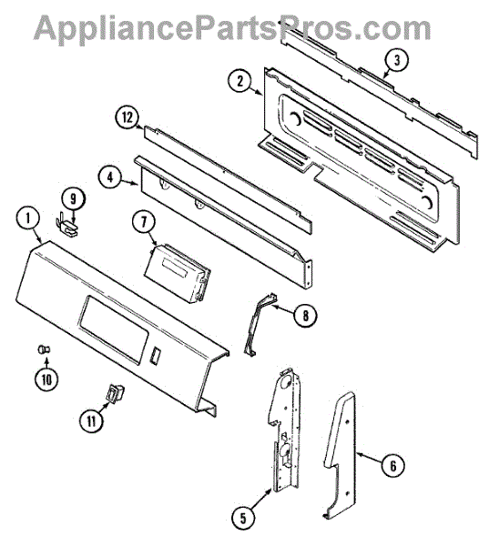 Sheet metal pan head screw secures panels, brackets, and components to appliance cabinets. Replace missing, stripped, or corroded screws to restore fit.