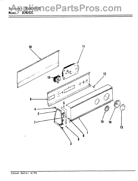 Parts for Norge DEM202HC: 02 - Control Panel (Rev. A-D) Parts