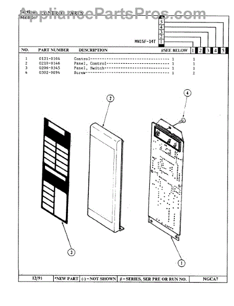 Parts for Norge MN15F-14T: 02 - Control Panel Parts