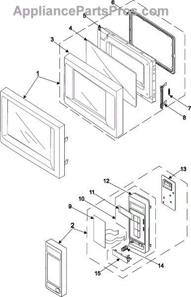 Complete outer door assembly for your microwave. Installs on the front of the unit. Replace if cracked, damaged, or won't close properly due to wear.