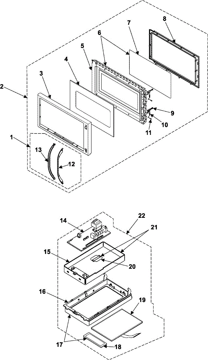 Replaces cracked, broken, or damaged microwave inner door frame. Restores door integrity and proper seal. Essential structural component for door assembly.