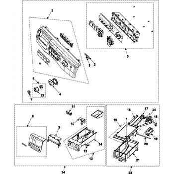 This assembly is the housing the dispenser drawer slides into, restoring a smooth pull-out action and proper dispensing. It supports the drawer and channels water through the detergent, bleach, and fabric softener compartments into the tub.
