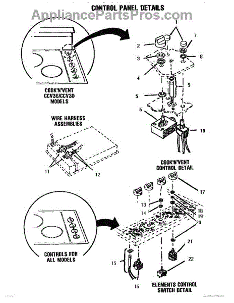 Parts for Thermador CCV36: 02 - Control Panel Parts