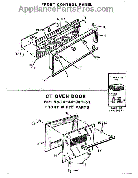 This latch knob kit replaces a broken or worn dishwasher door latch knob to restore secure door operation and a finished appearance. It installs at the front of the dishwasher door to engage the latch assembly. What it does: