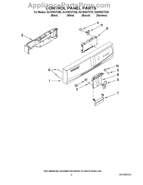 Parts for Whirlpool DU0300XTXS0: 02 - Control Panel Parts