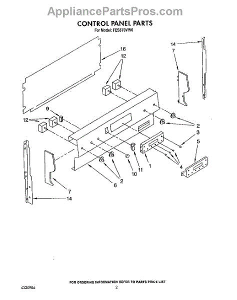 Parts for Whirlpool FES370VX0: 02 - Control Panel, Lit / Optional Parts