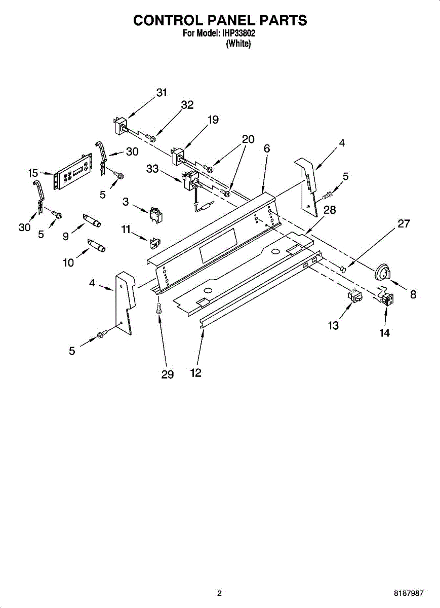 Machine screw with 8-32 threading used to secure control panels, brackets, covers, and internal components. Replace missing, stripped, or damaged screws.