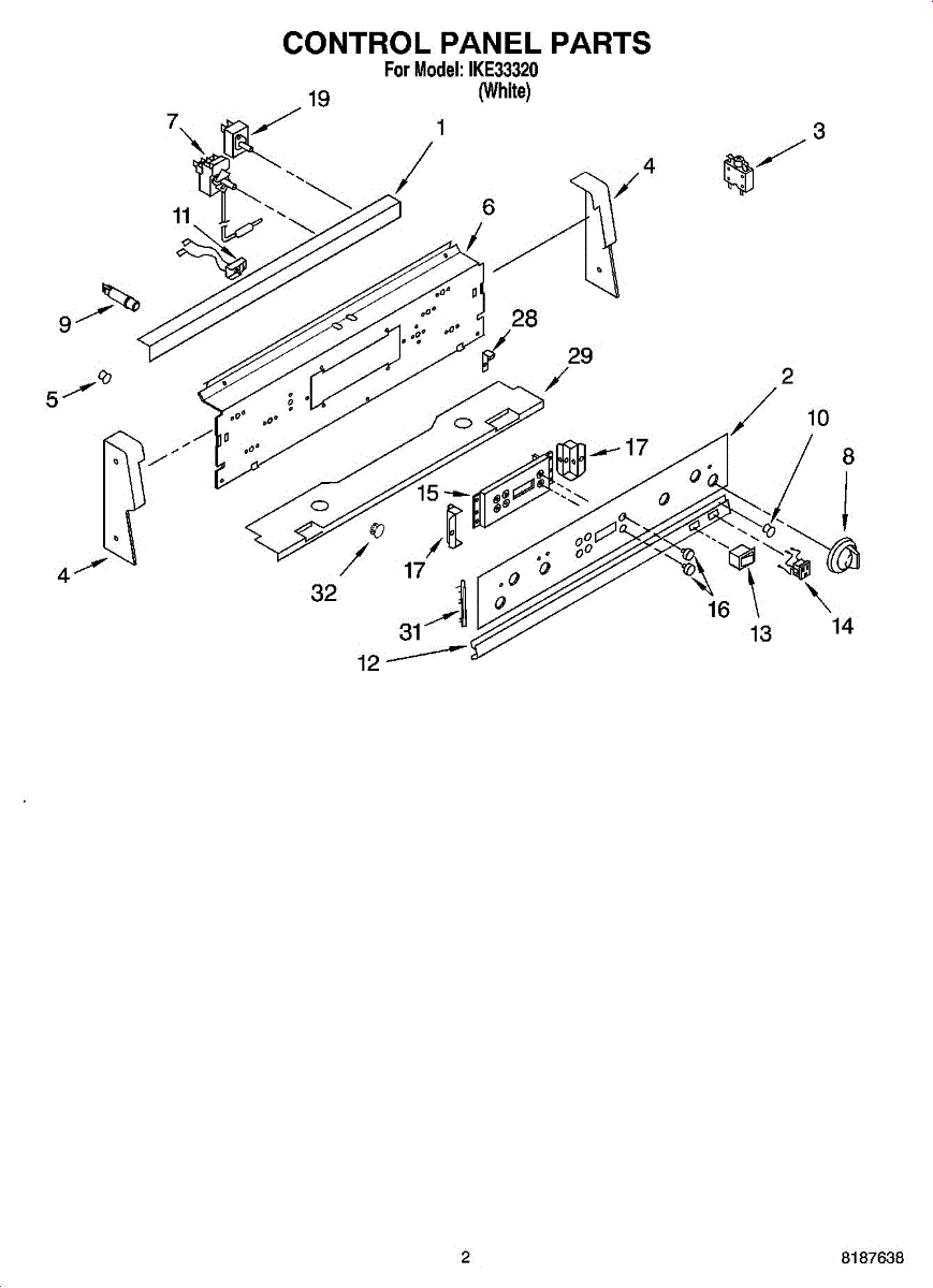 Machine screw with 8-32 threading used to secure control panels, brackets, covers, and internal components. Replace missing, stripped, or damaged screws.