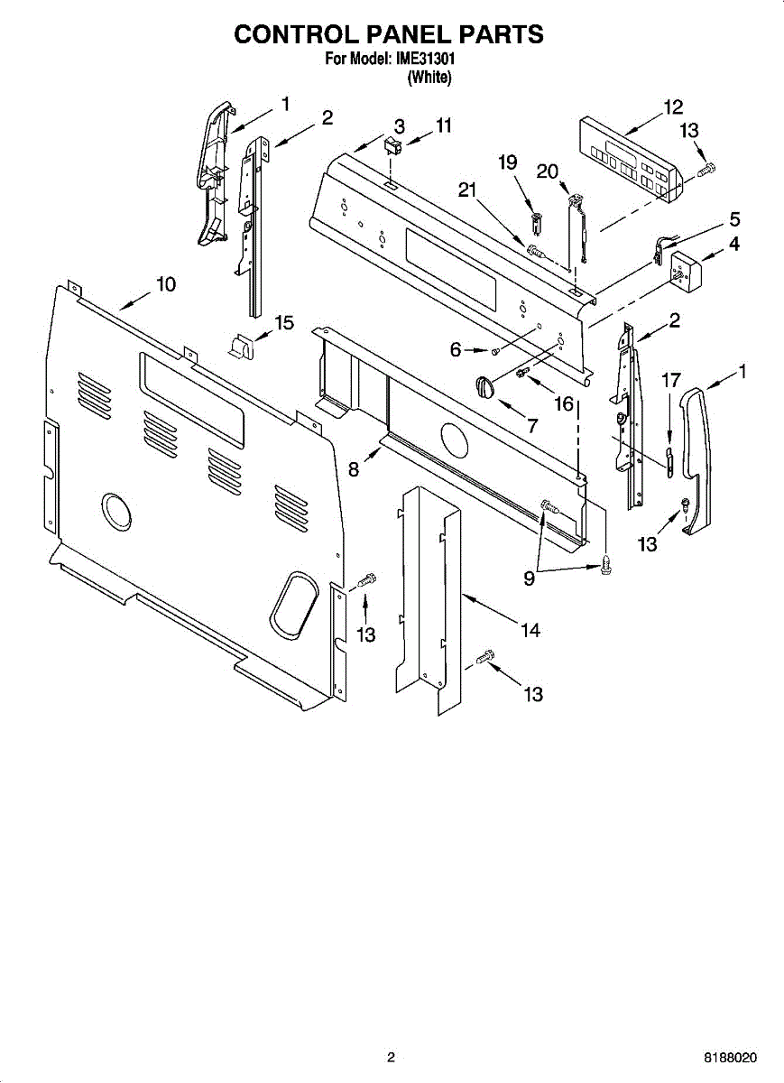Parts for Whirlpool IME31301: 02 - Control Panel Parts