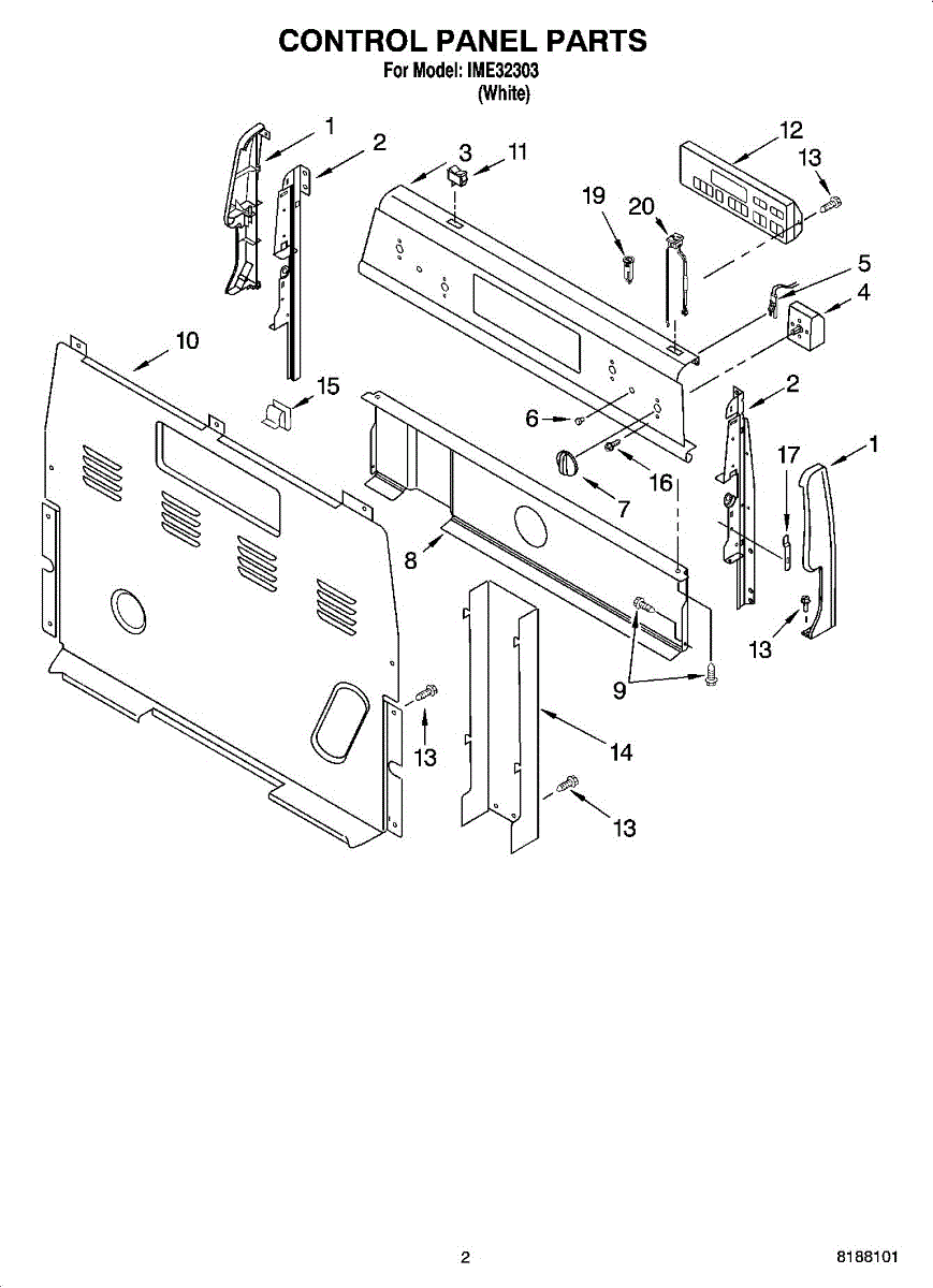 Parts for Whirlpool IME32303: 02 - Control Panel Parts