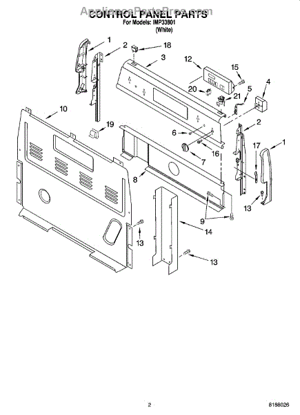 This white control panel is the front fascia for select ranges. It mounts to the console/backguard and supports the oven control and switches, restoring a clean, secure control area when the original panel is cracked, warped, or discolored.