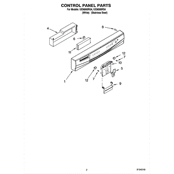 Parts for Whirlpool IUD8000RS4: 02 - Control Panel Parts