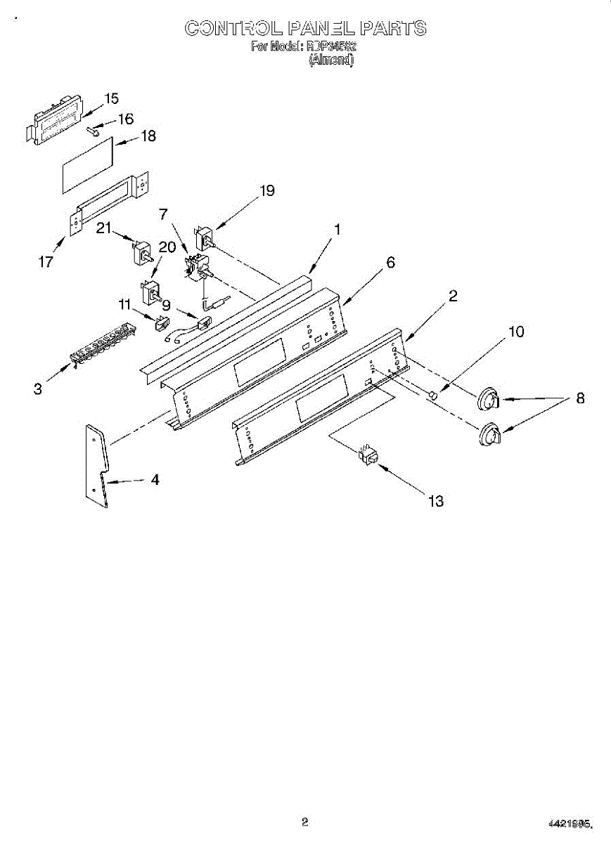 Replacement mounting screw for ranges. Secures panels, trim pieces, control boards, and brackets. Order when original screws are missing, stripped, or damaged.