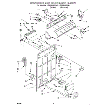 This rear panel support is the structural bracket that secures the appliance's rear cover/backguard in place. Replacing a worn or broken support restores proper alignment, helps protect internal components, and reduces vibration noise.