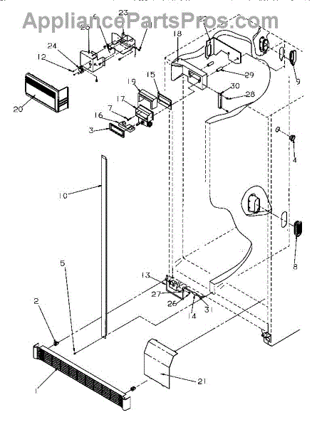 White plastic toe grille for your refrigerator. Installs at the base to cover the lower front panel. Replace if cracked, broken, or missing. 38"W x 4"H.