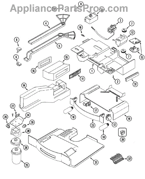 This factory screw secures appliance components to their mounting points. Replace missing, worn, or stripped hardware to restore a tight fit, proper alignment, and quieter operation across the affected assembly.