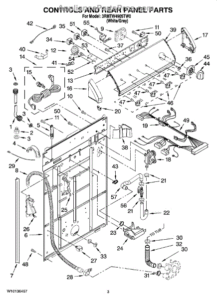 The Drain Hose is an OEM part for Whirlpool washing machines. It is responsible for directing and carrying away water that is pumped out of the washer tub during drain cycles. The drain hose connects from the bottom of the washtub to the household plumbing or out the back of the machine. This washer drain hose includes the retaining clips to hold in place. Causes of a bad drain hose can include mineral deposits from hard water building up inside the hose, cracking from flexing during use, rodent damage, or general degradation from years of service. Symptoms of a faulty drain hose include: