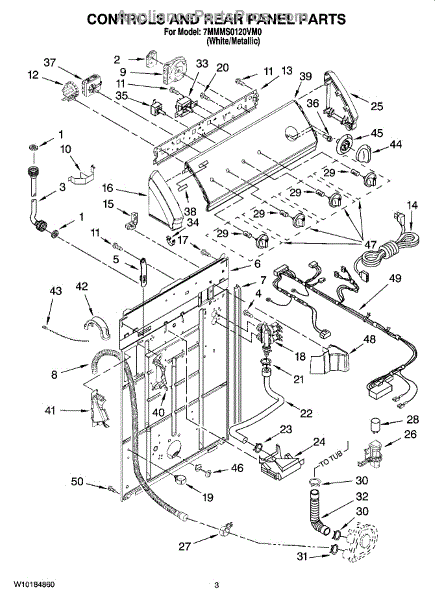 The Drain Hose is an OEM part for Whirlpool washing machines. It is responsible for directing and carrying away water that is pumped out of the washer tub during drain cycles. The drain hose connects from the bottom of the washtub to the household plumbing or out the back of the machine. This washer drain hose includes the retaining clips to hold in place. Causes of a bad drain hose can include mineral deposits from hard water building up inside the hose, cracking from flexing during use, rodent damage, or general degradation from years of service. Symptoms of a faulty drain hose include: