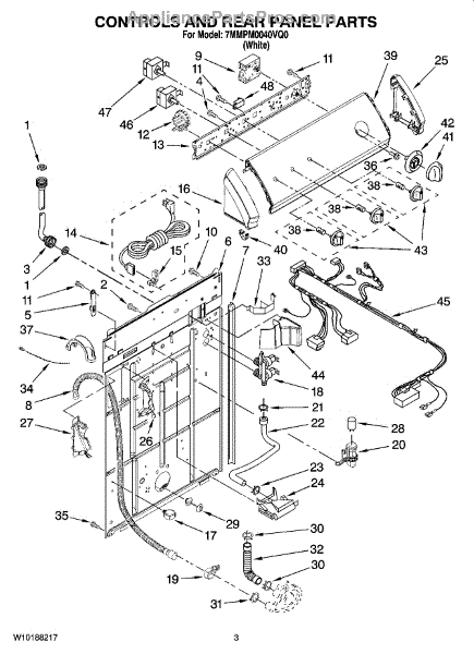 This rear panel support is the structural bracket that secures the appliance's rear cover/backguard in place. Replacing a worn or broken support restores proper alignment, helps protect internal components, and reduces vibration noise.