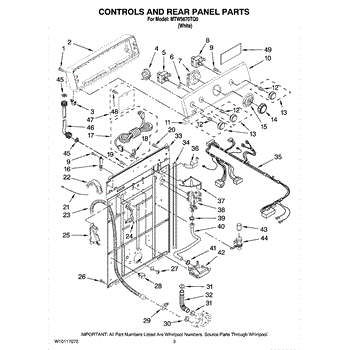 The Vacuum Break Hose is an OEM part for Whirlpool washing machines. It connects the vacuum break to the outer tub, preventing siphoning and ensuring proper water levels during the wash cycle. This hose plays a crucial role in maintaining the efficiency and performance of the washing machine by regulating the water flow.