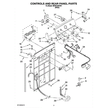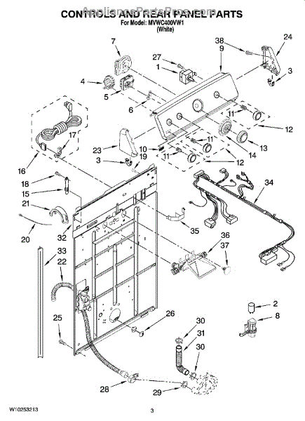 Water inlet valve assembly includes: Hot and cold inlet valves, thermistor, vacuum break and wiring harness.
