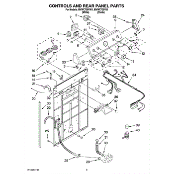 Water inlet valve assembly includes: Hot and cold inlet valves, thermistor, vacuum break and wiring harness.