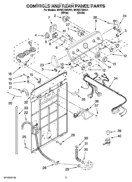 Water inlet valve assembly includes: Hot and cold inlet valves, thermistor, vacuum break and wiring harness.