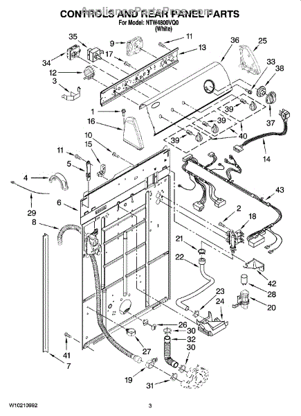 This rear panel support is the structural bracket that secures the appliance's rear cover/backguard in place. Replacing a worn or broken support restores proper alignment, helps protect internal components, and reduces vibration noise.